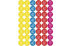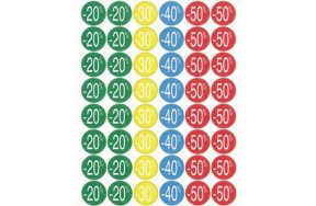 Χρωματιστές στρόγγυλες ετικέτες με τυπωμένα ποσοστά εκπτώσεων. Ιδανικές για καταστήματα.