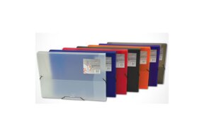 Πλαστικά κουτιά με λάστιχο σε διάσταση 35x25cm και ράχη 5cm.