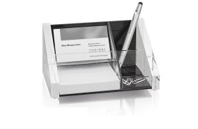 Κύβος σημειώσεων, μολυβοθήκη & θέση για κάρτες. Κατασκευασμένο από συνδυασμό εντελώς διάφανου & μαύρ...