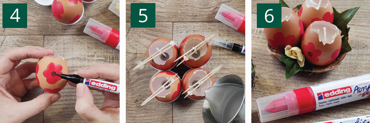 Μια εύκολη και οικονομική πασχαλινή κατασκευή για μικρούς και μεγάλους είναι τα πασχαλινά κεράκια σε αυγά. Οι ακρυλικοί μαρκαδόροι edding κάνουν τη διαδικασία πολύ απλή και δημιουργική!