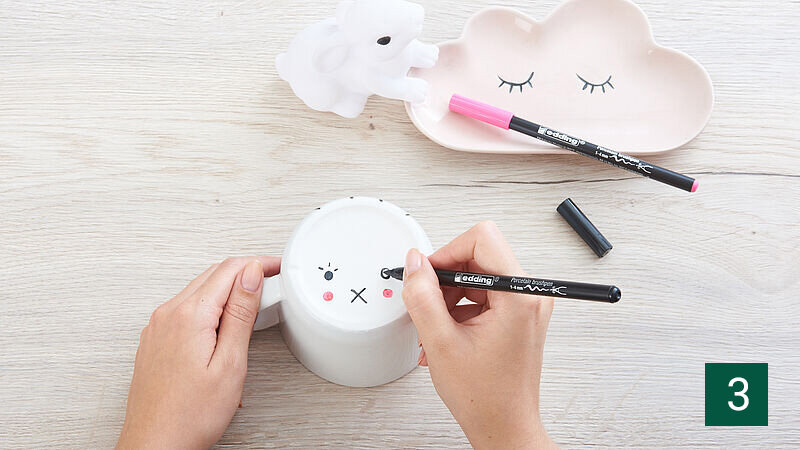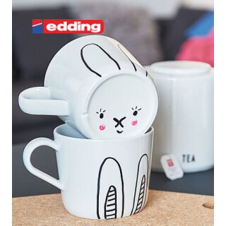 Αυτές οι κούπες θα μπορούσαν να είναι σε βιτρίνα καταστήματος και όμως δημιουργήθηκαν πανεύκολα με μαρκαδόρους πορσελάνης edding 4200. Οι μαρκαδόροι πορσελάνης έχουν εύκαμπτη μύτη πινέλου για βαφή μεγάλης επιφάνειας αλλά και μικρών λεπτομερειών.