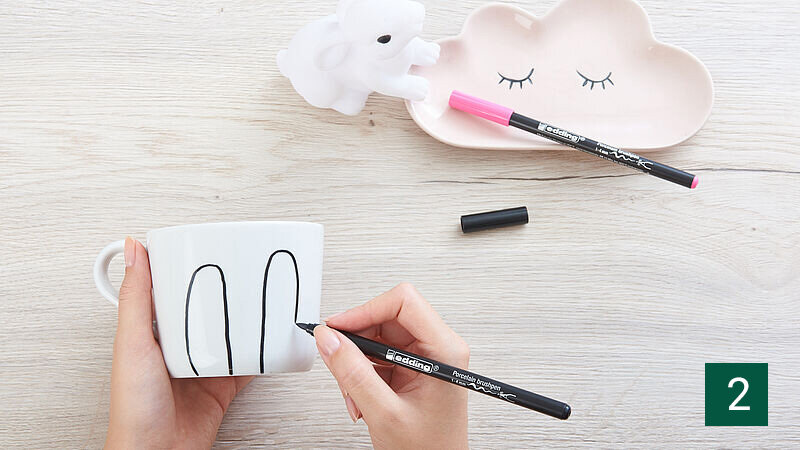 Σχεδιάζουμε απλά minimal αυτάκια κουνελιού με τον μαύρο μαρκαδόρο πορσελάνης edding 4200