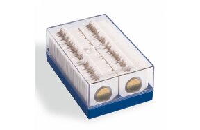 Σκούρο μπλε άλμπουμ για την αποθήκευση έως και 200 χάρτινων θηκών νομισμάτων.