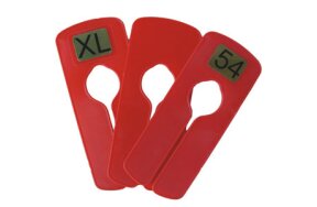 Πλαστικά νουμεράκια που τοποθετούνται στις κρεμάστρες των ρούχων για την αναγνώριση του μεγέθους.