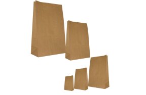Χάρτινες σακούλες κατασκευασμένες από χοντρό κραφτ χαρτί. Με πιέτα & πάτο.