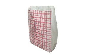 Χαρτοσακούλες γωνίες με κόκκινη εκτύπωση καρώ.