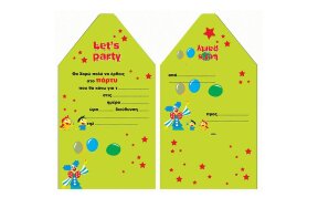 Προσκλήσεις για παιδικό πάρτυ. Διπλώνει και γίνεται φάκελος.