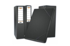 Κουτιά με ράχη 3cm & λάστιχο. Κατασκευασμένα από πλαστικοποιημένο χαρτόνι.