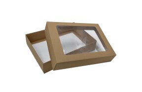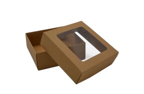 Τετράγωνο κουτί κραφτ με αποσπώμενο καπάκι. Διαθέτει παράθυρο που επιτρέπει την οπτική επαφή με το π...