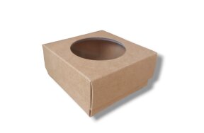 Τετράγωνο κουτί κραφτ με αποσπώμενο καπάκι. Διαθέτει στρόγγυλο παράθυρο που επιτρέπει την οπτική επα...