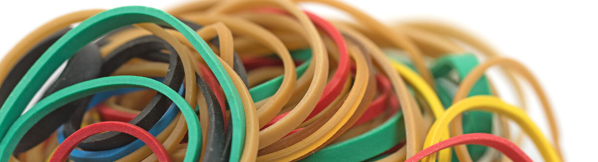 Λάστιχα συσκευασίας από καθαρό καουτσούκ. Διατίθενται σε όλες τις διαστάσεις ψιλά & πλακέ.