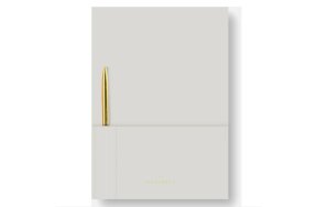 Minimalist elegance meets functionality in this notebook + gold metal ball pen set. Features gold ac...