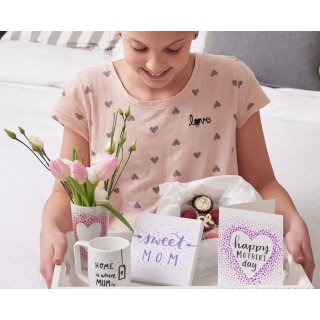 Αφού ολοκληρώσετε τις δημιουργίες σας, γράψτε μια κάρτα με ζεστές ευχές, βάλτε φρέσκα λουλούδια και λαχταριστά σοκολατάκια και φτιάξτε το αγαπημένο της ρόφημα. Προσφέρετε τα σε έναν ξύλινο δίσκο πρωινού και δείξτε στην μητέρα σας πόσα πολλά σημαίνει για εσάς!