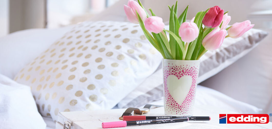 Με τους μαρκαδόρους πορσελάνης edding μπορείτε να σχεδιάσετε οποιοδήποτε σχέδιο επιλέξετε σε ένα αντικείμενο από πορσελάνη ή πυρίμαχο γυαλί .