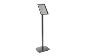 Freestanding snap frame for inserts A4, base plate made of steel with snap frame 25 mm profile, corn...