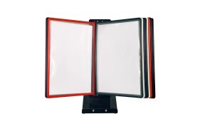 Stylish contoured table stand with 10 SHERPA PANEL display panels in A4 format (10 panels in black)....