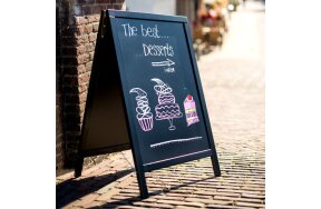 Mini table chalk board. Strong wooden stand with an attached writing surface and gold centre chain.