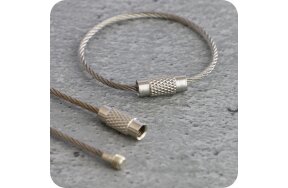 Wire rope connector with screw, open length 110 mm, made of stainless steel, colour silver thickness...
