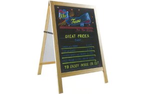 Wooden pavement sign in rewritable chalkboard in format 530 x 800 mm.