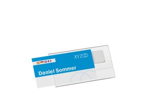 Name tags, 74 x 37 mm, with magnetic clip, incl. printable labeling sheet