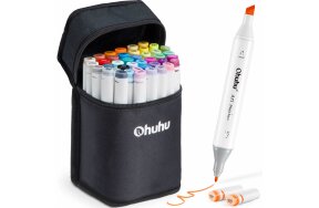OHUHU ART MARKERS DUAL TIP FINE & CHISEL 40 COLORS