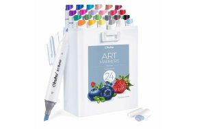 Set with 24 alchohol art markers 24 basic and vibrant colors The highly pigmented and vibrant marker...