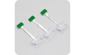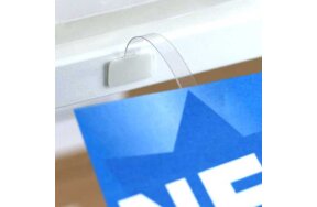 Shelf wobblers with 75 mm length made of recyclable PET for permanent attachment of printed products...
