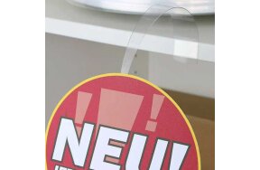 Shelf wobblers with 208 mm length made of recyclable PET for permanent attachment of printed product...