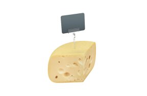 Shelf wobblers with 215 mm length made of recyclable PET for insertion into shelf strip.