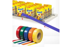Shelf wobblers with 75 mm length made of aluminium for permanent attachment of printed products.