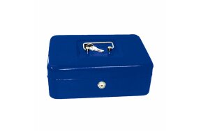 Metal coin and banknote holder with cylinder lock. Size 33 x 23.5 x 7.5 cm.