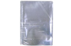 A4 portrait punched pockets, glass clear, open at top, multi-punched.